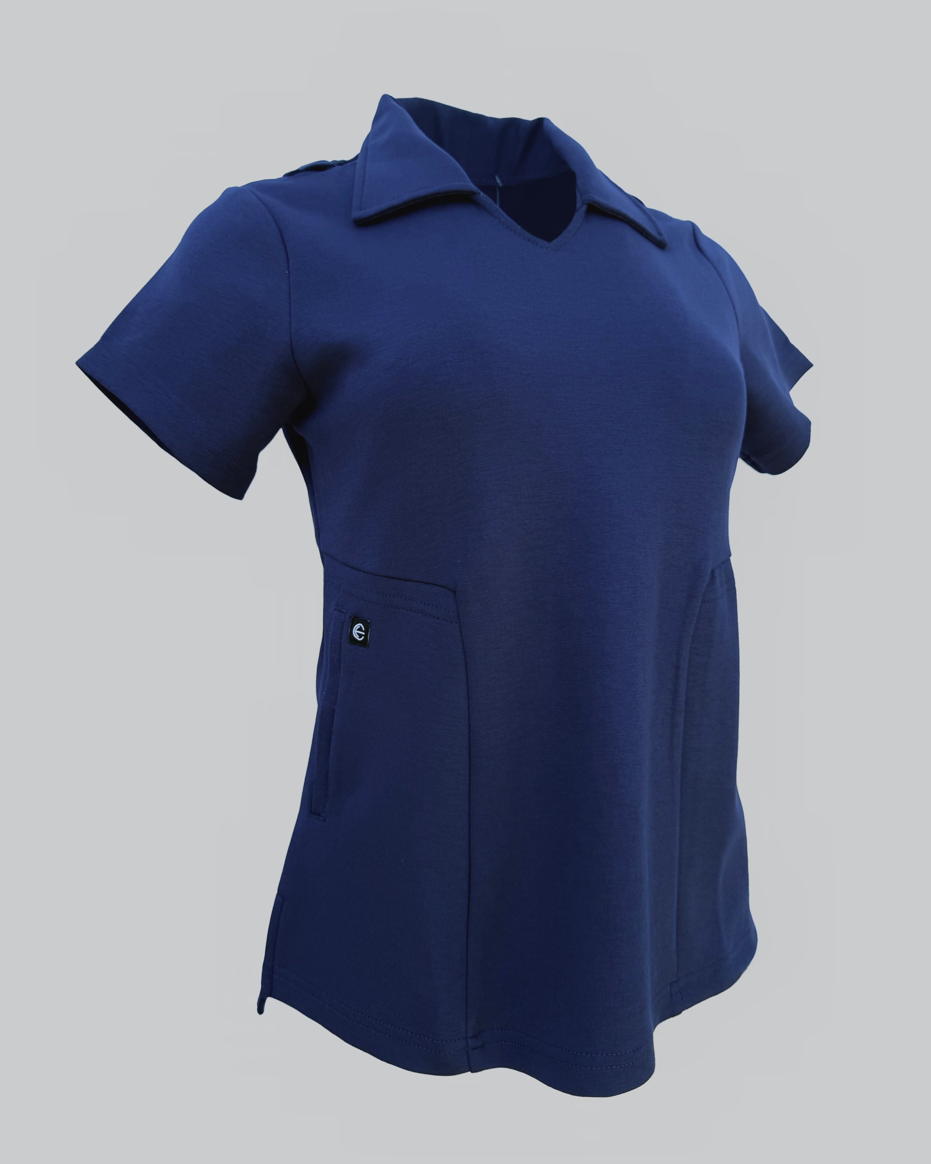 Look Sharp. Move Freely. A Collared scrubs top. Stretchy knit fabric. Roomy pockets. Look professional and polished – no effort required. Pair it with the Kiara Straight-leg Scrubs Pants.